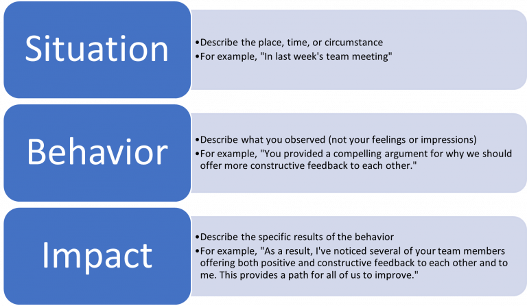 برای اینکه این مهارت را بدست آورید یک ابزار توسعه یافته تحت عنوان مدل “وضعیت – رفتار – تاثیر “(SBI) استفاده کنید.
